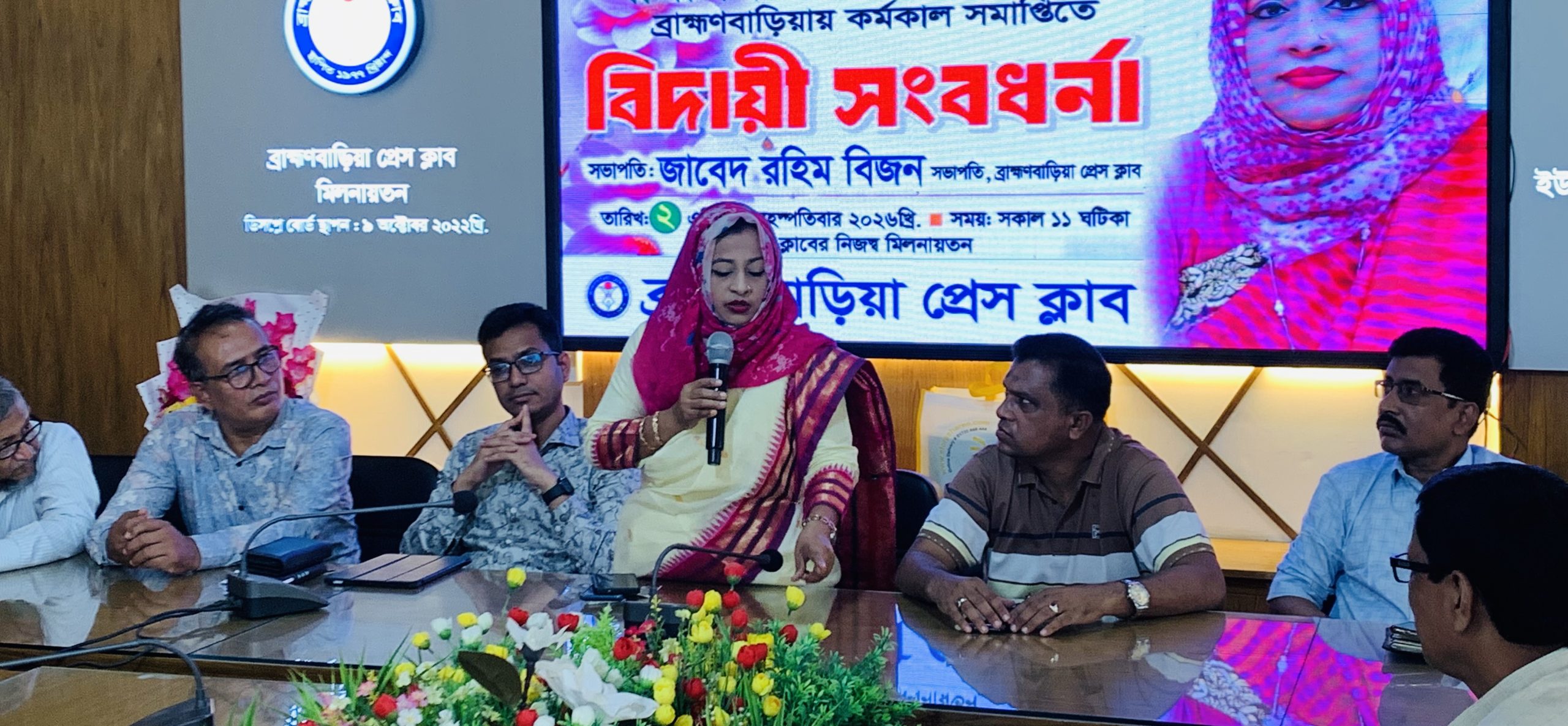 ব্রাহ্মণবাড়িয়া প্রেসক্লাবের উদ্যোগে জেলা প্রশাসক শারমিন আক্তার জাহানের বর্ণাঢ্য বিদায় সংবর্ধনামো মনির হোসেন : ব্রাহ্মণবাড়িয়া জেলার জেলা প্রশাসক ও জেলা ম্যাজিস্ট্রেট শারমিন আক্তার জাহানের সফল কর্মকাল সমাপ্তি উপলক্ষে তাকে এক বর্ণাঢ্য ও আবেগঘন বিদায়ী সংবর্ধনা…