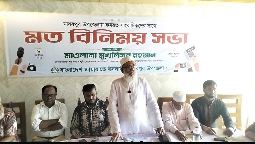 মাধবপুরে সাংবাদিকদের সঙ্গে মত বিনিময় করেছেন জামায়াতে ইসলামী কেন্দ্রীয় শুরা সদস্য ও আমীর মাওলানা মুখলিসুর রহমান
